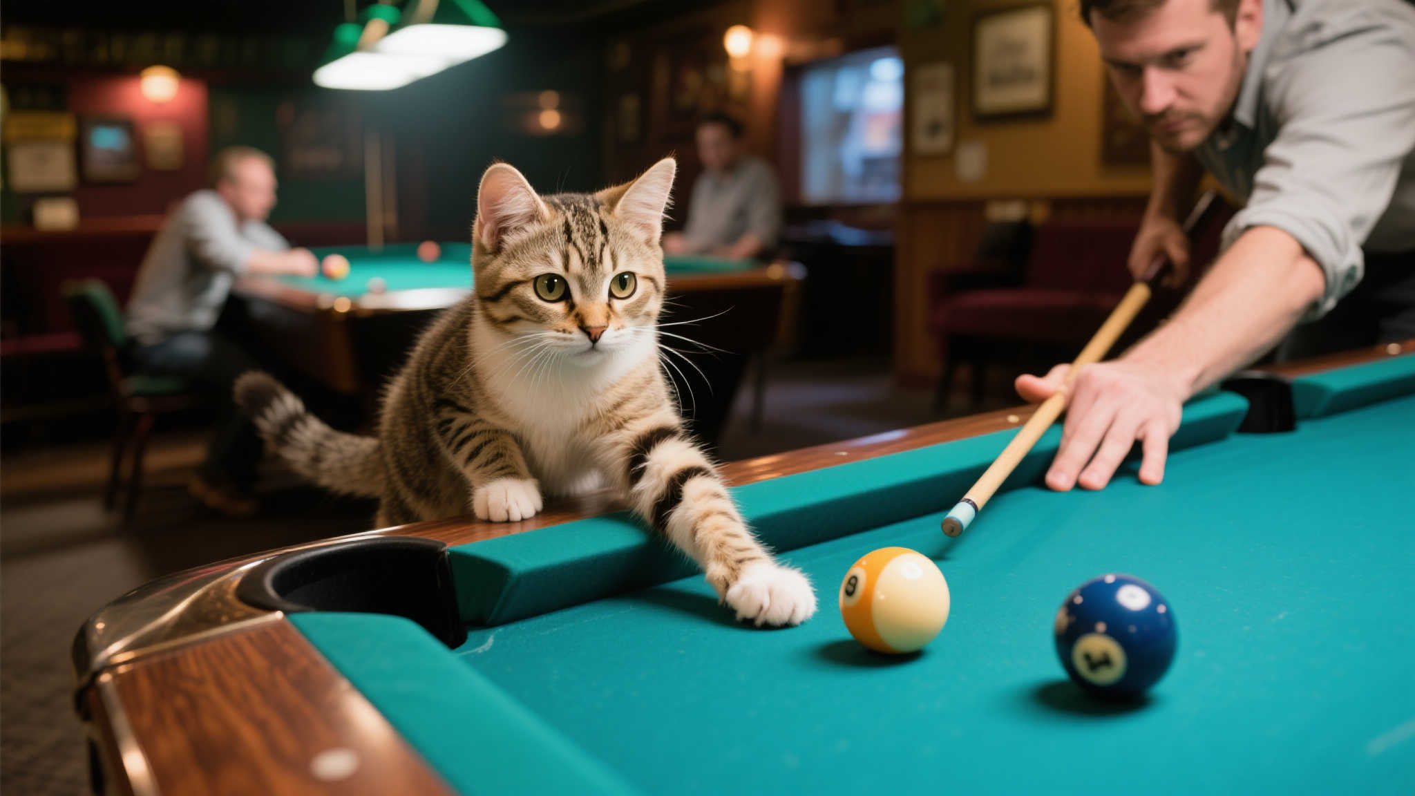 台球室流浪猫自学成才变身顶级球友,失误时还能助你一杆进洞!